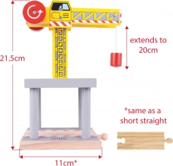 Der Kran kann problemlos mit anderen Holzeisenbahnsystemen auf dem Markt kombiniert werden, was ihn zu einem vielseitigen Spielzeug macht.