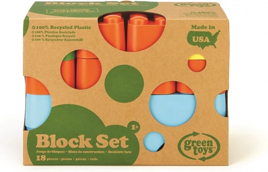 Umweltfreundliches Konstruktionsset Green Toys – 18 sichere Bausteine aus recyceltem Kunststoff. Leicht, robust, frei von PVC, BPA und Phthalaten. Geeignet ab 6 Monaten.