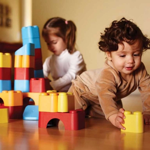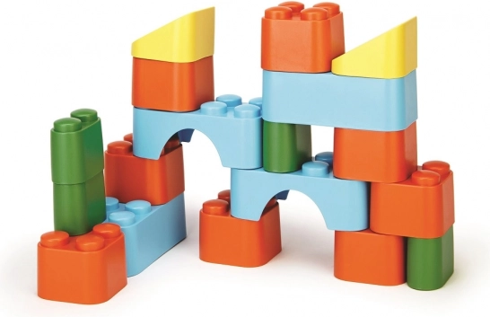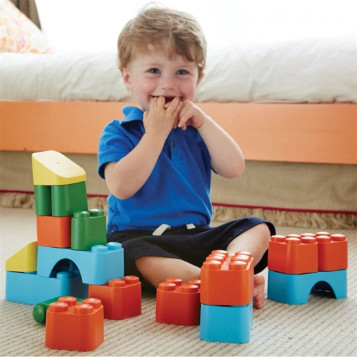 Entdecken Sie Spielspaß und nachhaltiges Design in einem Set. Die Green Toys Bausteine sind leicht, zugleich stabil und langlebig, hergestellt in den USA aus recyceltem Kunststoff aus Milchflaschen. Kinder können Burgen, Türme und eigene Fantasiebauten errichten – ganz ohne Risiko durch Kleinteile oder scharfe Kanten.