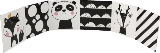 Abwechselnde kontrastreiche Formen und niedliche Illustrationen im skandinavischen Stil fesseln Kinder und helfen ihnen später, die einzelnen Waldtiere zu erkennen. Die praktische Akkordeonform ermöglicht es, das Buch auszuklappen und vor das Kind zu stellen, auch wenn es noch nicht selbstständig blättern kann.