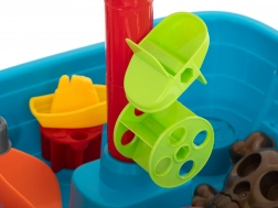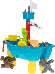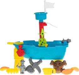 Der Spieltisch in Form eines Piratenschiffs ist mehr als nur ein Tisch. Es ist ein Kinderspielplatz, der für kreatives Spielen mit Wasser und Sand gedacht ist.