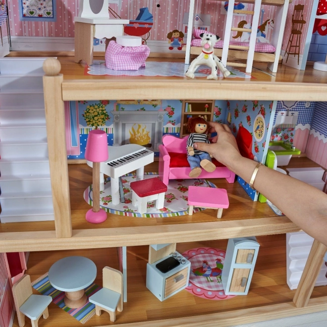 Das Puppenhaus bietet 3 Etagen und 5 Zimmer mit Balkon – der ideale Raum für kreatives Spiel und eigene Geschichten.