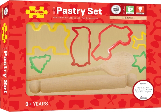 Dieses BIGJIGS Kinder-Backset mit Ausstechformen ist ein großartiger Helfer für kleine Köche und Konditoren. Durch die Kombination aus hölzernem Werkzeug und bunten Ausstechformen lernen Kinder die Grundlagen des Backens und verbessern ihre Feinmotorik sowie die Hand-Auge-Koordination. Die hochwertige Verarbeitung und die sicheren Materialien sorgen für angenehmes und unbeschwertes Spielen.