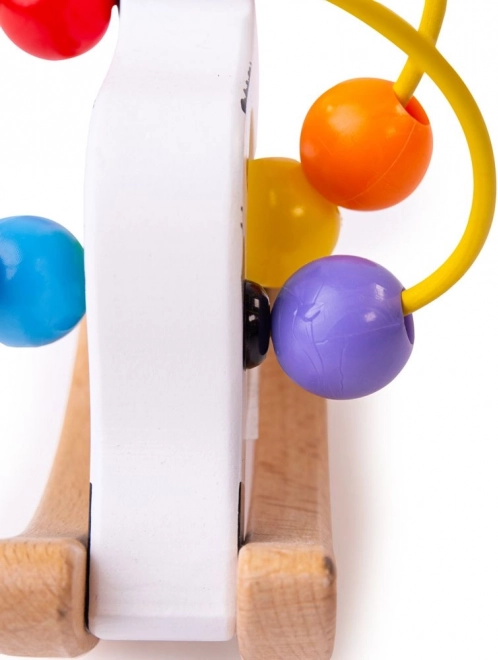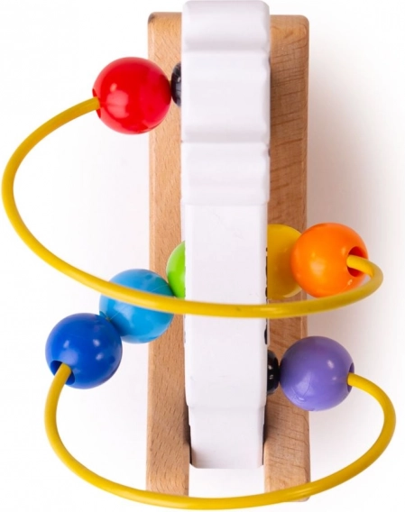 Farbenfrohe Perlen auf einem stabilen Draht motivieren zum Schieben und fördern so den Griff, die Hand-Auge-Koordination und die Geduld.