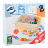 Kleine Kreative können mit diesem Holzset stundenlangen Spaß genießen. Die Box enthält 81 bunte Perlen und 2 Schnüre, die es Kindern ermöglichen, verschiedene Schmuckstücke nach ihren Vorstellungen zu gestalten.