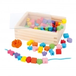 Das Auffädeln der Perlen trainiert die Hand-Auge-Koordination und die feinmotorischen Fertigkeiten bei Kindern.