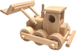 Klassischer Holzbulldozer aus hochwertigem Buchenholz für kleine Baumeister. Er verfügt über eine bewegliche Schaufel, drehende Räder und abgerundete Kanten für sicheres Spielen. Die Oberfläche ist lediglich gewachst und poliert, ganz ohne chemische Behandlungen, und bewahrt so den natürlichen Look. Ideal für fantasievolles Spiel zu Hause und im Sandkasten.