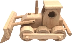 Der Bulldozer ermöglicht dank der beweglichen Frontschaufel und zuverlässig drehenden Holzrädern ein realistisches Spielerlebnis.