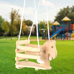 Die Holzschaukel in Pferdeform ist eine hervorragende Wahl für die ersten Schaukelversuche. Sorgfältig verarbeitetes Massivholz in naturbelassener Ausführung ist langlebig und zugleich bereit für eine mögliche farbliche Gestaltung nach Ihrer Fantasie. Die erhöhte Umrandung, die Rückenlehne und die seitlichen Griffe bieten maximale Stabilität und Sicherheit – auch für die kleinsten Reiter.