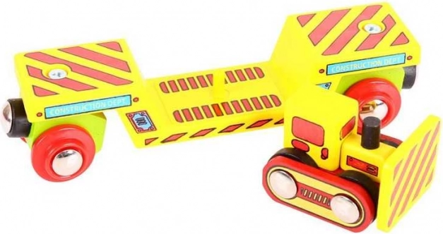 Dieses vielseitige Set bietet doppelten Spielspaß: Kinder können mit dem Bulldozer separat spielen oder ihn auf den robusten Waggon verladen und über die Strecke transportieren. Magnetkupplungen sorgen für eine einfache Verbindung mit weiteren Waggons oder einer Lok, sodass die Erweiterung Ihrer Anlage im Handumdrehen gelingt.