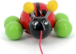 Die Fühler an kleinen Federn wippen beim Ziehen und animieren Kinder zu weiteren Schritten und neugierigem Spiel.
