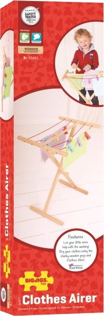 Suchen Sie das perfekte Zubehör für das Kinderzimmer? Der Holzwäscheständer Bigjigs Toys ist so konzipiert, dass er Kindern stundenlangen Spielspaß bietet und gleichzeitig ihre Feinmotorik entwickelt. Wenn kleine Kinder so tun, als ob sie Wäsche wie ihre Eltern trocknen, haben sie nicht nur Spaß, sondern lernen auch etwas über alltägliche Tätigkeiten.