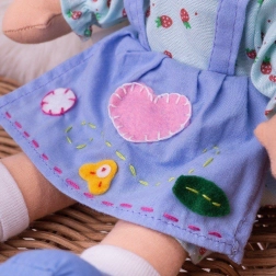 Die Stoffpuppe Grace besteht aus weichem Textilmaterial, das Sicherheit und Komfort beim Spielen gewährleistet.