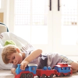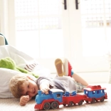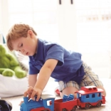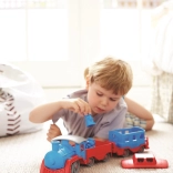 Der blaue Zug von Green Toys ist das ideale Spielzeug zur Förderung kindlicher Fantasie und Feinmotorik. Die Dampflokomotive zieht zwei leicht abnehmbare Waggons, und der Zug besteht aus 4 Teilen in einer schönen Farbkombination. Im Set sind zwei niedliche Figuren der Bären-Schaffner enthalten.