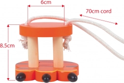 Treten Sie ein in die Welt des Spaßes und der Fähigkeiten mit diesen laufenden Holzpfoten, die als lustige Hilfe für Ihren kleinen Entdecker entworfen wurden. Einfach auf die Pfoten steigen, die Schnüre in die Hände nehmen und das Abenteuer kann beginnen!