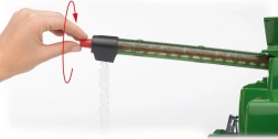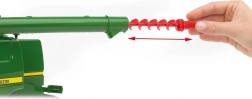 Das Modell ist aus hochwertigem und widerstandsfähigem Kunststoff gefertigt und eignet sich sowohl für den Innenbereich als auch für Garten oder Sandkasten. Öffnende Türen, klappbare Spiegel, drehbare Aufstiegsstufen zur Kabine und der Ausleger mit funktionsfähiger Schnecke zum Entladen von „Getreide“ sorgen für ein maximal realistisches Erlebnis.