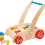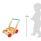 Entdecken Sie die ideale Unterstützung für die ersten Schritte – eine Holzlauflernhilfe mit Wagen voller bunter Bausteine. Die robuste Konstruktion aus Massivholz und Sperrholz bietet Stabilität, während Buchenholz-Bausteine in verschiedenen Formen (ca. 5–10 cm) zu kreativem Spiel einladen. Dank des bequemen Griffs in 39 cm Höhe fühlen sich Kinder sicher und geborgen.
