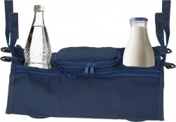Dank der schnellen Befestigung am Kinderwagengriff und der verstellbaren Riemen passt sich der Organizer den meisten Modellen an. Robustes Textilmaterial und Reißverschlusstaschen schützen den Inhalt vor Herausfallen und Witterung.