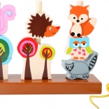Ständer mit 3 Stiften, Schnur, 8 Fädelteile (Waldtiere und Bäume)