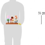 Igel, Fuchs, Eichhörnchen, Waschbär und Eule sowie drei Bäumchen schaffen eine spielerische Waldszene, die zu Geschichten anregt.
