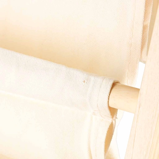 Das Regal besteht aus Naturholz und hochwertigem Baumwollstoff, verfügt über glatte Kanten und eine stabile Konstruktion für maximale Sicherheit. Der zeitlose Look aus Holz und Weiß passt zu jedem Interieur und unterstützt gesunde Lesegewohnheiten sowie Ordnung lernen.
