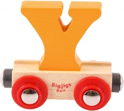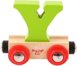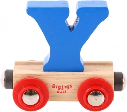 Der Buchstabe Y lässt sich leicht vom Wagen abnehmen und austauschen, sodass Kinder Namen und Wörter legen und das Alphabet spielerisch lernen können.