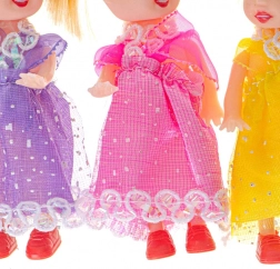Wir präsentieren Ihnen ein Set aus drei wunderschönen Puppen, die ideal für den Spaß im Puppenhaus sind! Sie sind 10 cm groß und passen perfekt in jeden Raum des Puppenhauses. Dank ihrer farbenfrohen Outfits - in Rosa, Gelb und Lila mit roten Schuhen - wirkt jeder Raum wie maßgeschneidert für sie. Diese Puppen bieten die perfekte Gelegenheit, die kindliche Kreativität zu entwickeln, fördern kreatives Denken und helfen dabei, die feinmotorischen Fähigkeiten zu verbessern.