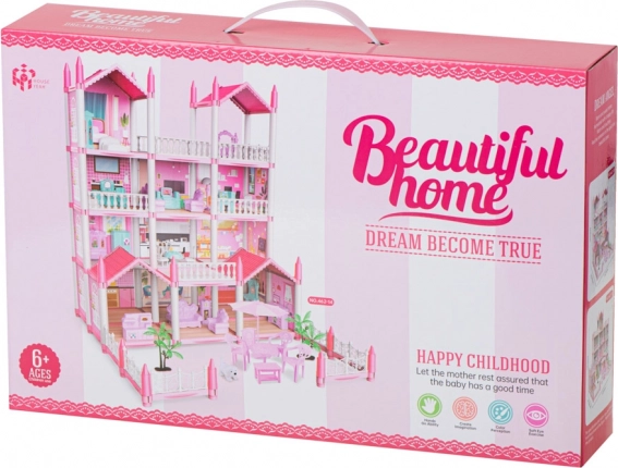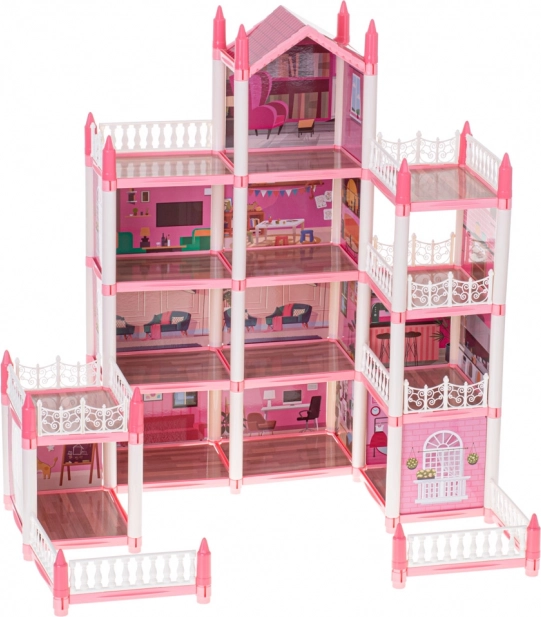 Toller Spaß für Ihre Kinder! Die Rosa Villa bietet endlose Möglichkeiten für kreatives Spielen. Kinder können die vier Etagen nach ihren Vorstellungen gestalten und ihr eigenes gemütliches Zuhause für Puppen schaffen. Das Set enthält Möbel und Dekorationselemente, die das Aussehen realistisch gestalten.