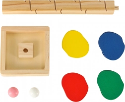 Bunte Blätter und leise Klänge beim Aufprall der Kugeln halten die Aufmerksamkeit der Kinder, fördern die Konzentration und das Farbempfinden.