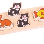 Das BIGJIGS Holz-Einlegepuzzle mit Motiven von Hund, Katze, Kaninchen, Fisch und Meerschweinchen ist ein ideales erstes Puzzle für die Kleinsten. Die Teile haben eine angenehme Form und Größe für kleine Hände, sodass sie leicht aufgehoben und in die richtigen Öffnungen eingesetzt werden können. Die farbig bedruckte Grundplatte führt das Kind zum erfolgreichen Zuordnen und stärkt die Freude am Lernen.
