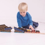 Die Teile bestehen aus verantwortungsvoll gewonnenem Holz und entsprechen europäischen Sicherheitsnormen. Dank des Standardmaßes der Schienen lässt sich die Brücke mühelos mit beliebten Sets verbinden – so erweitern Sie die Strecke ohne Kompromisse bei der Kompatibilität.
