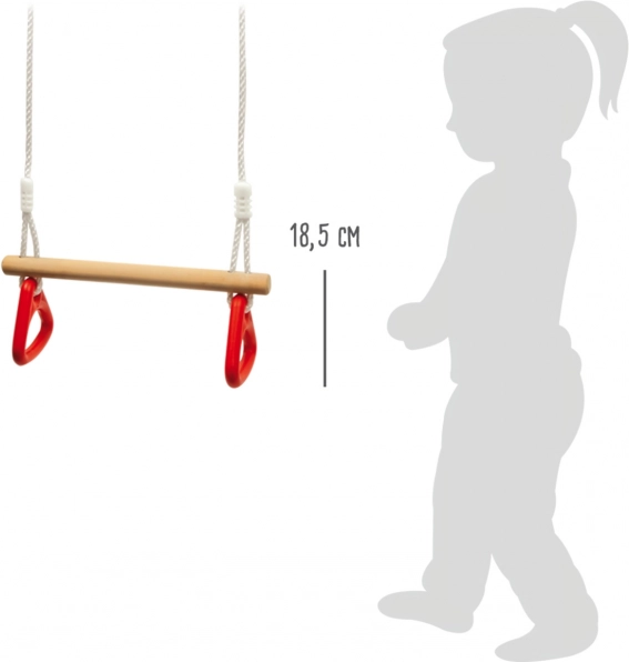 Die multifunktionale Kinderschaukel mit Reck und Gymnastikgriffen von small foot fördert Gleichgewicht, Kraft und Geschicklichkeit. Eine robuste Holzstange mit zwei Kunststoffgriffen, höhenverstellbare Seile und Metallringe für sicheres Aufhängen machen dieses Set zur idealen Wahl für drinnen und draußen.