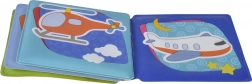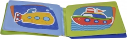 Fröhliche Illustrationen von Autos, Schiffen, U-Boot und Flugzeug erweitern den Wortschatz und die visuelle Wahrnehmung.