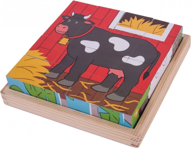 Jede Drehung eines Würfels zeigt einen neuen Bildausschnitt – Kinder legen einen Hahn, eine Kuh, ein Schaf und weitere Bauernhofmotive. Ein Spielzeug, sechsmal so viel Spaß.