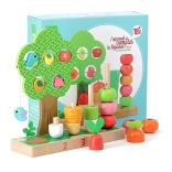Die nummerierte Holzbasis 1–5 bringt Kindern das Zählen und Vergleichen von Mengen bei. Das Stapeln von Gemüse und Formen fördert logisches Denken und Koordination.