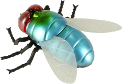Der metallisch blau-grüne Körper, rote Augen und transparente Flügel machen das Spielzeug zu einer naturgetreuen Nachbildung einer Fliege – perfekt für Streiche und Bildung.