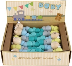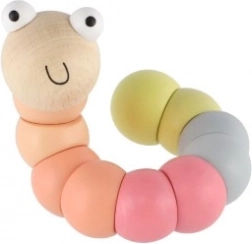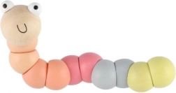 Dieser Holz-Wurm/Raupe besteht aus glatten, farbigen Segmenten, die aufeinander folgen und ein leichtes Biegen in verschiedene Formen ermöglichen. Dank der angenehmen Pastellfarben und des freundlichen Gesichtchens schließen Kinder ihn sofort ins Herz. Ideal für spielerisches Lernen und die sanfte Förderung der Feinmotorik und der Kreativität.