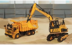 Ausleger mit Schaufel, drehbare Kabine und realistisch gestaltete Ketten sorgen für ein authentisches Bedienerlebnis einer Baumaschine.