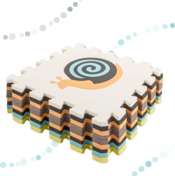 Diese große Schaumstoffmatte besteht aus 9 Teilen mit den Maßen 30 × 30 × 1 cm, die sich leicht ineinanderfügen. Kontrastreiche Farben und niedliche Tiermotive ziehen Kinder an und stimulieren Sehen und Tastsinn. Die herausnehmbaren Mittelstücke dienen als einfaches Sortierspiel – Kinder lernen, Formen zu erkennen und an die richtige Stelle zu setzen.