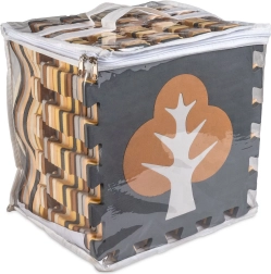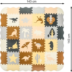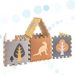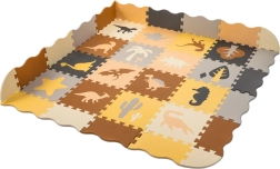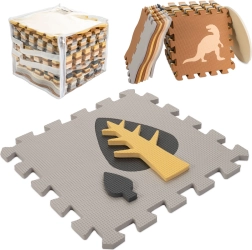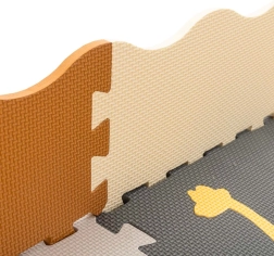 Die Matte kann als große Spielfläche 143 × 143 cm genutzt oder zu einem Spielgitter 113 × 113 × 16 cm zusammengestellt werden. Weicher EVA-Schaum dämpft Stöße, isoliert gegen Kälte und ist rutschfest. Das Material ist leicht zu reinigen – einfach mit einem feuchten Tuch abwischen. Die elegante neutrale Farbpalette passt zu modernen Interieurs und kann einen Teppich im Kinderzimmer ersetzen.