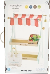 Le Toy Van Verkaufsstand Honeybee ist ein beliebtes Produkt der Marke Le Toy Van, bekannt für ihr preisgekröntes Design und Qualität. Dieser Verkaufsstand ist mit einem rot-weißen Baldachin, einer Glocke und Holzboxen mit Obst ausgestattet. Er inspiriert Kinder zu Rollenspielen, die ihre sozialen Fähigkeiten und Kreativität fördern.