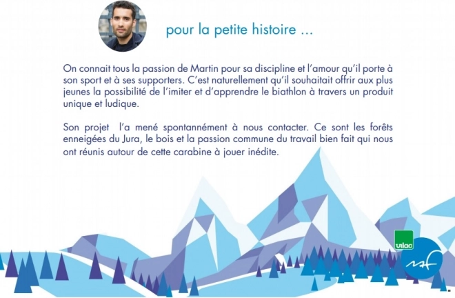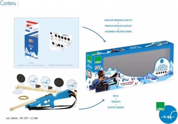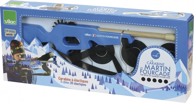 Verspieltes Biathlongewehr für kleine Sportbegeisterte, inspiriert vom berühmten französischen Sportler Martin Fourcade. Dieses Holzspielzeug ist ideal für alle Kinder, die sich wie echte Biathleten fühlen möchten.