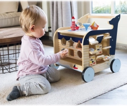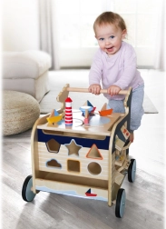 Begeben Sie sich auf Entdeckungsreise mit dem hölzernen Geher in Walfischform. Dieser Geher hilft Kindern nicht nur bei den ersten Schritten, sondern bietet auch verschiedene interaktive Spielzeuge, die die Motorik fördern.