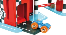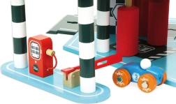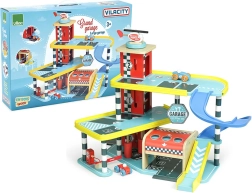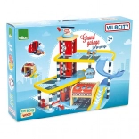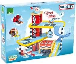 Die große Holzgarage VILAC Vilacity ist das perfekte Zentrum für den Stadtverkehr kleiner Rennfahrer. Dank durchdachter mechanischer Details wie funktionierendem Aufzug, Schranke und Waschanlage fördern Kinder Feinmotorik, Fantasie und logisches Denken. Das Set enthält zwei Autos und einen Hubschrauber, sodass das Spiel direkt nach dem Aufbau beginnen kann.