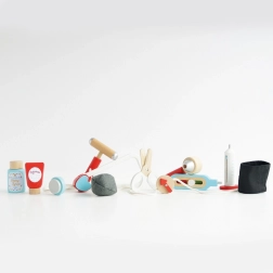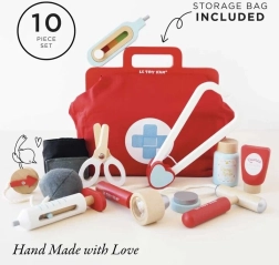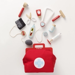 Diese designstarke Arzttasche aus der Honeybake-Kollektion von LE TOY VAN ist eine hervorragende Grundlage für Rollenspiele. Die Vintage-Stofftasche mit festem Boden und Holzgriffen verbirgt 10 sorgfältig gearbeitete Zubehörteile, mit denen Kinder echte ärztliche Untersuchungen nachahmen können. Ebenfalls enthalten sind druckbare Kärtchen mit „Arztrezept“ für ein noch realistischeres Spielerlebnis.