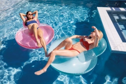 Genießen Sie entspannte Momente mit unseren aufblasbaren Ringen mit Rückenlehne, erhältlich in Orange und Türkis.