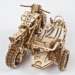 Die 3D-Holzpuzzles von UGEARS kombinieren traditionelles Material mit cleverer Mechanik. Beim Bau lernen Sie, wie Zahnräder, Achsen und ein Gummibandmotor funktionieren. Die Teile passen exakt zusammen und das Modell bewegt sich nach korrekter Schmierung mit Wachs sanft und zuverlässig.