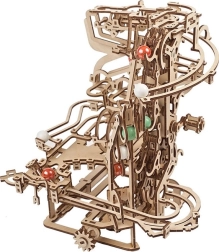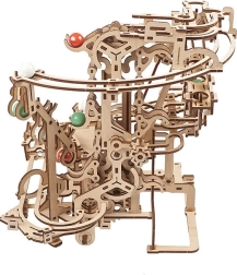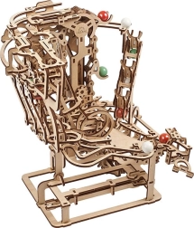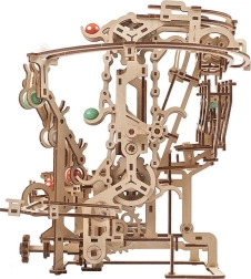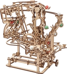 Diese ausgeklügelte Kugelbahn aus hochwertigem Sperrholz vereint Modellbauvergnügen, edukativen Mehrwert und entspannende Unterhaltung. Der manuell betriebene Kettenaufzug transportiert die Kugeln sanft zum Start, von wo aus sie drei separate Abschnitte mit jeweils einem einzigartigen Haupthindernis durchlaufen. Das offene Design betont die funktionale Mechanik und feine Details.