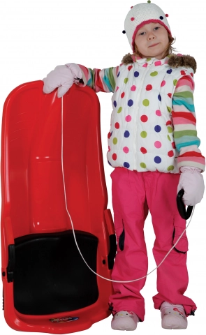 Leichte und strapazierfähige Kunststoffschlitten SuperJet bieten eine sichere und bequeme Fahrt im Schnee. Dank der Seitenbremsen behalten Sie Geschwindigkeit und Richtung unter Kontrolle; erhöhte Seitenwangen und der geformte Sitzbereich erhöhen Stabilität und Komfort. Die Zugleine erleichtert das Handling und das Ziehen bergauf.