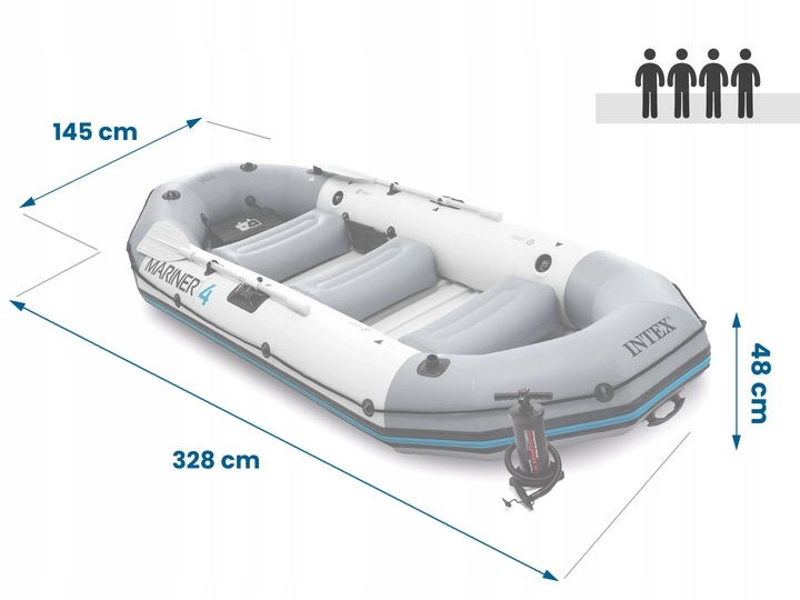 Das aufblasbare Boot INTEX Mariner 4 kombiniert hohe Widerstandsfähigkeit, Stabilität und Praktikabilität. Das dreischichtige PVC mit 0,75 mm Stärke ist beständig gegen Abrieb, Durchstiche, Salzwasser und UV-Strahlung, während 3 separate Luftkammern für erhöhte Sicherheit auf dem Wasser sorgen. Der weiche aufblasbare Boden und drei Sitze bieten Komfort auch bei längeren Ausflügen.